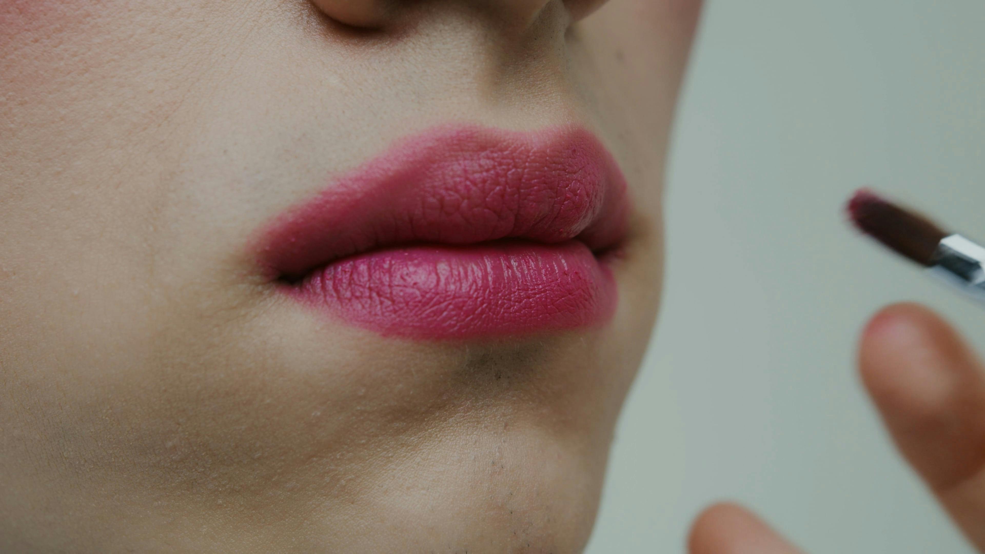 Close-up Lip Makeup Application with Brush
